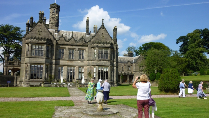 The tour began in the gardens, attractively arranged on different levels and including a sunken parterre, an Edwardian Rock Garden and a delightful Orangery built in 1831, pre-dating the present house. There had been a Georgian Heath House, built about 1720, but when this was inherited by Ben’s great-great-great grandfather in 1834 his wealthy wife wanted it altered. Eventually it was demolished and extravagantly rebuilt in Tudor Gothic style using stone from the local Hollington quarry. While the interior was being finished the family went on a Continental ‘Grand Tour’, purchasing expensive artefacts for the new house. As we toured the stately rooms Ben pointed out these and other treasures and explained the history of his forebears and their connections with famous people while we looked at their portraits. Tea was served in the elegant dining room and some of us were privileged to use the family’s most valuable piece of furniture – a superb William IV circular extending dining table. This was won in a bet by John Capel Philips, Ben’s great-great grandfather who was otherwise renowned for terrorizing his family and roaming the house with a loaded gun!