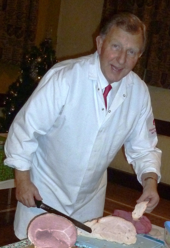 How quickly this year has gone by! It seemed no time since Ian Rogerson talked to us about cheese in January and now here he was again, in his role as a butcher, to serve his meat at our Christmas party. First we welcomed our guest Doreen Ainsworth, a WI member for sixty years, before we toasted absent friends and the WI. Then, crackers pulled, we collected plates full of ham and turkey and served ourselves to salads, quiches and accompaniments (such as Gill’s famous beetroot jelly) provided by the committee, and platters piled with assorted cheeses provided by Ian. He urged us to eat cheese with the meat, which seemed to be a satisfying combination judging from the drop in noise level as everyone concentrated on tucking in to the food and wine. As always, members had volunteered to supply a selection of fabulous puddings which completed the meal.