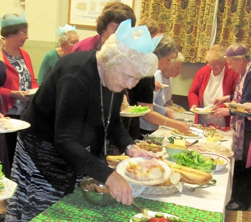 The Christmas tree was lit and the tables were set with crackers, wine glasses and decorated with berried holly and red ribbon. Members were arriving in their ' party clothes' and looking forward to an enjoyable evening. Our President Penny Bailey kept the business to an absolute minimum. We were informed that voting will take place on the resolutions in January, so were encouraged to read about them in the WI magazine. The coffee and mince pie morning held at one of our member's homes raised £172. Our glasses were filled and we made a toast to absent friends.