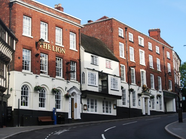 As a major inn on the road that connects Ireland, Wales and London, the Lion Hotel has seen a lot of history. The building, a dozen bays long, stands on Wyle Cop and was built in the 1770s when the owner was John Ashby, a former mayor and town clerk of Shrewsbury. There was an earlier inn, then known as the Red Lion, on the site at least as far back as the 16th century.
